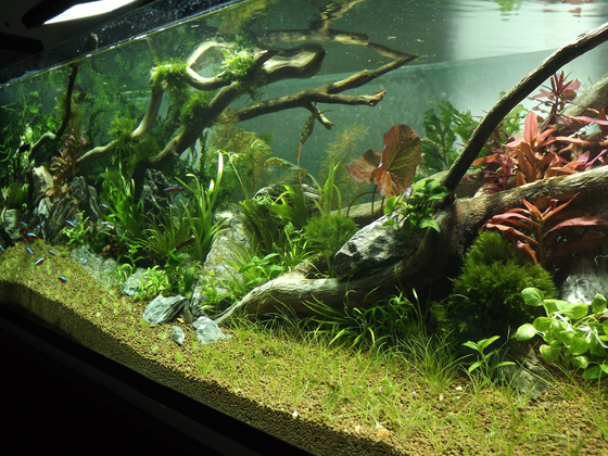 Tipikus pontylazacos akvárium. Alacsony magasság nagy hosszúság.