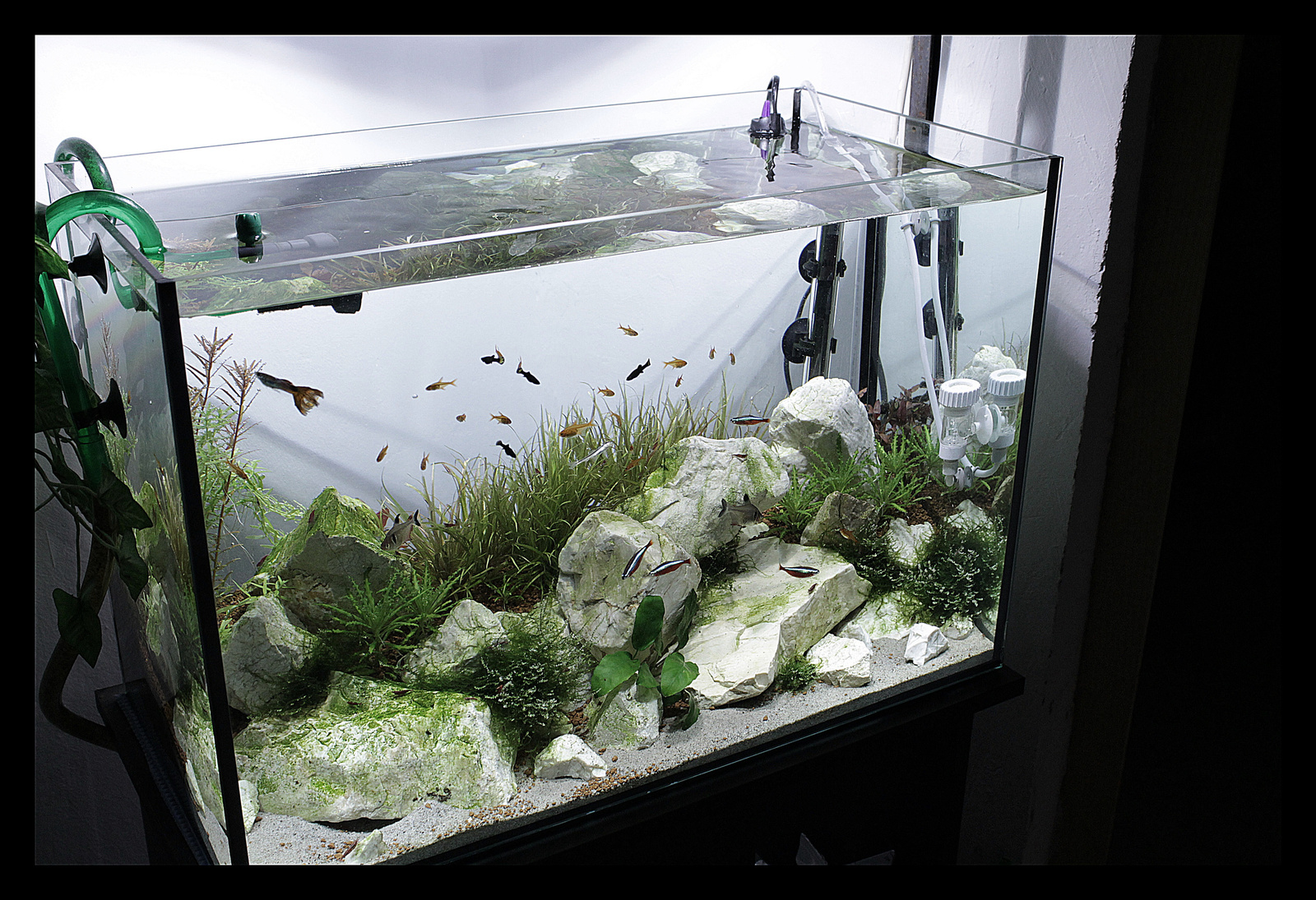 Meg történt a vízcsere, innentől heti csere jön. A víz keménysége neptunos csepp tesztel 7. Kíváncsi vagyok az eredményre, azért csak mészkő ez.